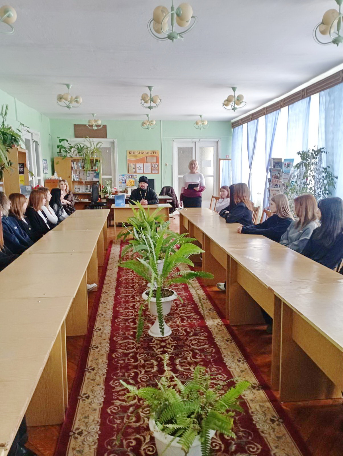 15 января в библиотеке лицея состоялся открытый информационный час духовно-нравственной направленности «Роль женщины в современном мире». Гостем мероприятия стал отец Андрей, священник храма Рождества Христова. Во время информационного часа учащимися были заданы вопросы, касающиеся роли женщины в современном обществе, в Церкви, а также о том, что Библия говорит о служении женщины в семье.