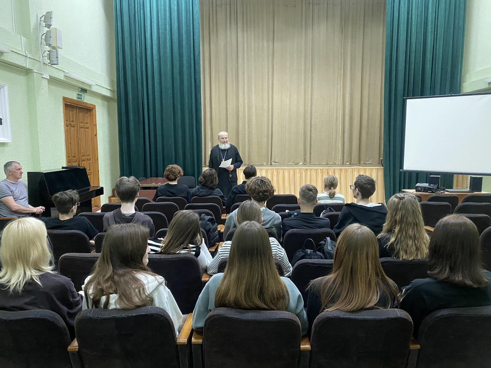 Ребята с большим интересом слушали о. Николая и задавали вопросы по ходу выступления.
